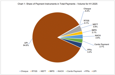 In the first six months of 2025, UPI accounted for the largest share at 85% of transactions in terms of volume, while it had only 9% share in transactions by value.