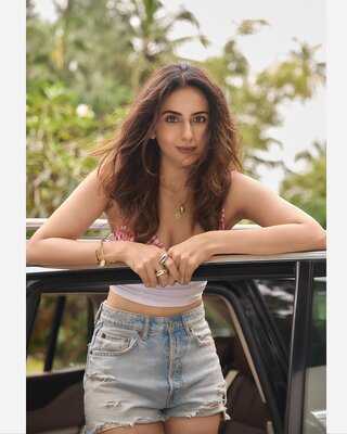 In this new look, Rakul struck several stunning poses. She paired a crop top with shorts.